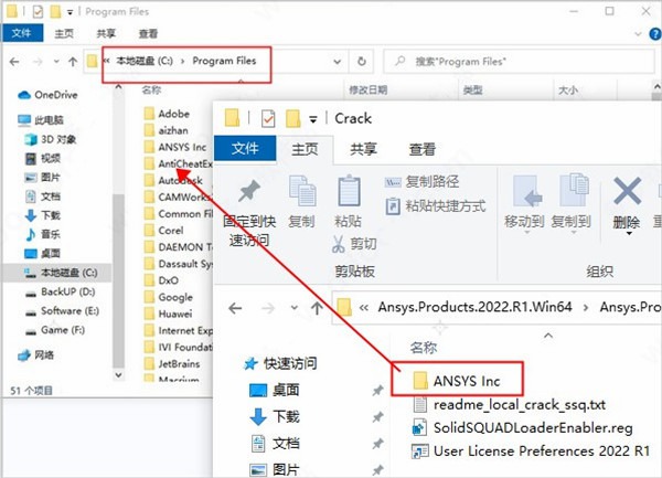 8.随后大家逐渐破译破解文件夹名称中的ANSYS Inc将文件夹拷贝到Program Files安装APP网站根目录,拆换全部文件夹名称;默认设置详细地址:C:Program Files