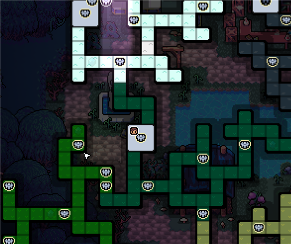 沼泽与流苏树高山(上白区)和缠结种植园(左下亮绿区)相接