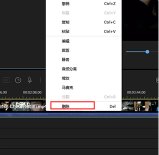 3.在取得成功切分并寻找适合的视频內容后,可以删掉多余的视频內容。鼠标右键挑选视频段,点击删掉选择项删掉。