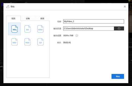 导出适用视频、机器设备和音频文件格式,达到绝大多数导出要求,视频导出高质量。