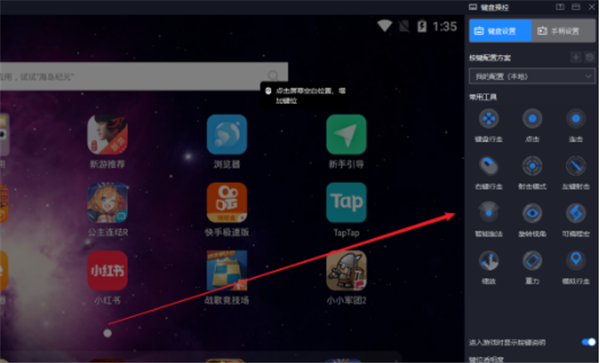 应用右边作用栏的虚似触碰作用,随后依据提醒在要点一下的部位设置快捷键。
