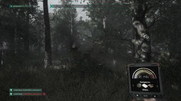 在切尔诺贝利人汉化版地图上确定总体目标地址后,尽可能顺着树的侧边挪动,防止辐射源偏高的地区。