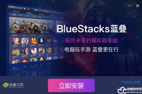 蓝叠模拟器(https://www.52maicong.com/pc-software/122738.html),随后安裝APK文档。