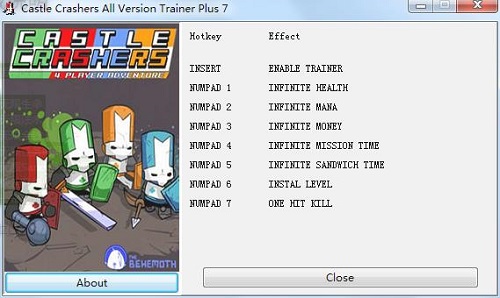 2.解压安装包,双击鼠标Castle Crashers All Version Trainer Plus 7.EXE开启修改器,返回游戏里面