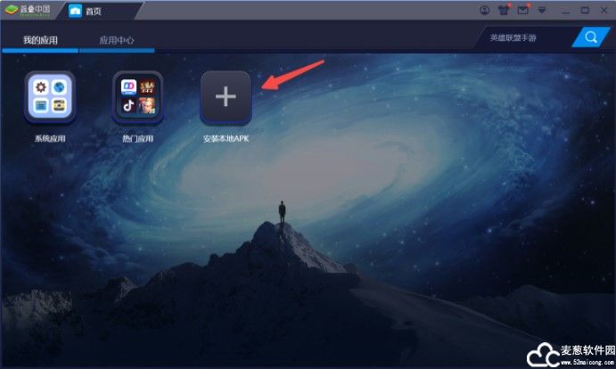 4.打开模拟器,点一下安裝当地apk随后在下载的软件库中寻找解压的APK文档,双击鼠标开启就可以安裝。