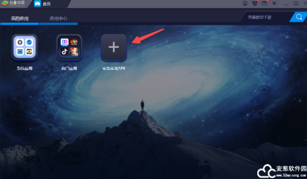 4、运行模拟器,点击“安装本地apk”,然后找到在麦葱站下载的软件包中解压的APK文件,双击打开就可以安装了。