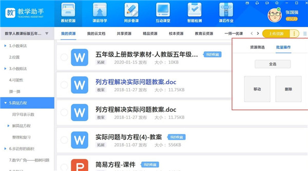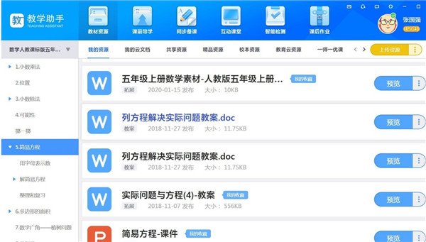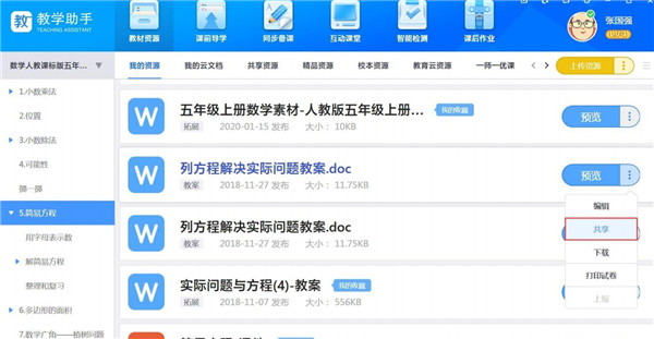 2.进到程序流程时,用户可以在我的资源相对应的教材内容章节下准备充分好资源,包含客户自身提交和搜集的资源,便于立即在导学案、备课教案、教学等阶段应用。