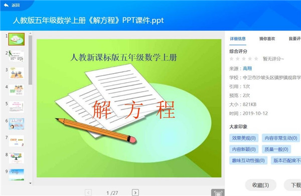 7.教师可以在共享资源中见到别的用户共享的资源,及其资源的得分和搜集。点一下资源文章标题或浏览预览资源。在共享资源浏览页面,您可以对资源开展得分、评价和标识,并查询系统软件消息推送的资源;
