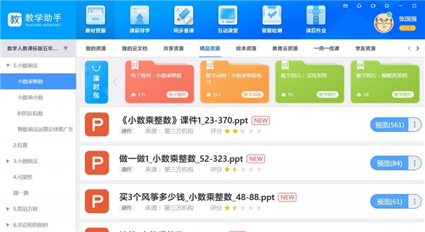 8.教师可以在教学助手电脑版中的高品质资源中查询优质课时包资源,包含教学设计、教学课件、微型课、素材内容、互动交流资源等。