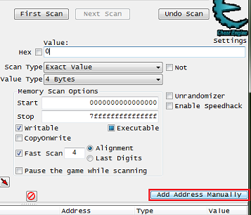 在作弊表地址列表上建立新的运行内存纪录。