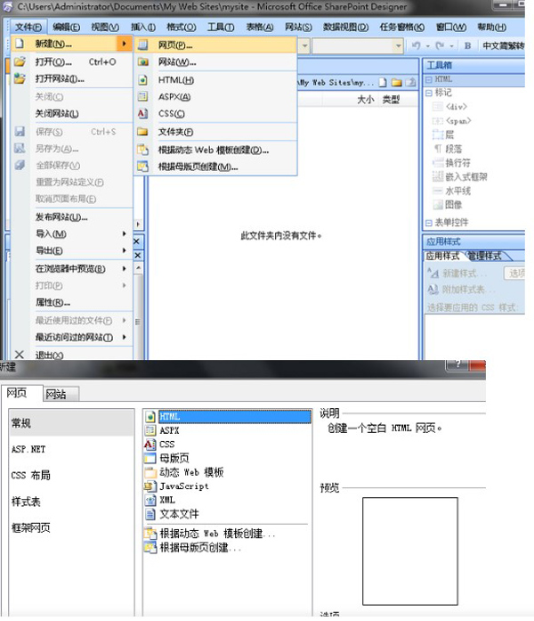 2.点击菜单栏的文档选择项,点击弹出来选择中的新创建,点击二级菜单中的网页。依据新网页的需要挑选您要的文件格式;