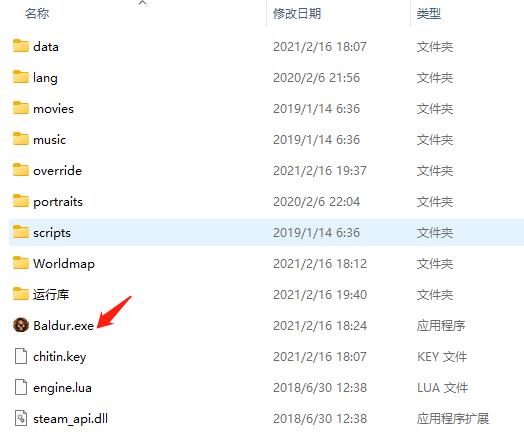 2.解压后就能得到游戏程序流程,如下图所示,双击鼠标Baldur.exe程序流程进到游戏