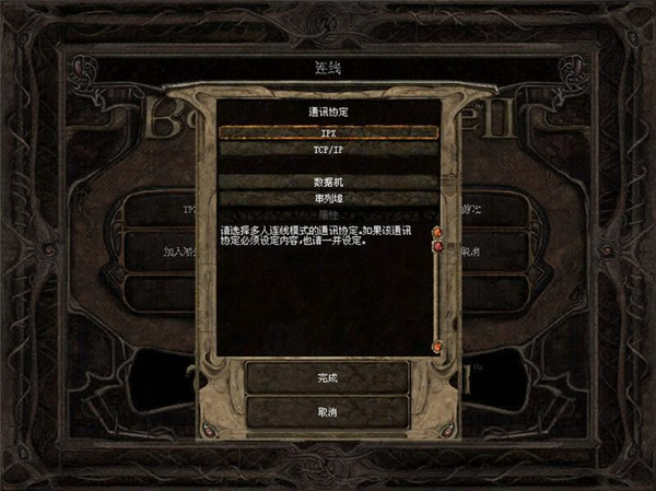 2.通讯协议选择根据游戏对战平台,对等网上IPX方式。