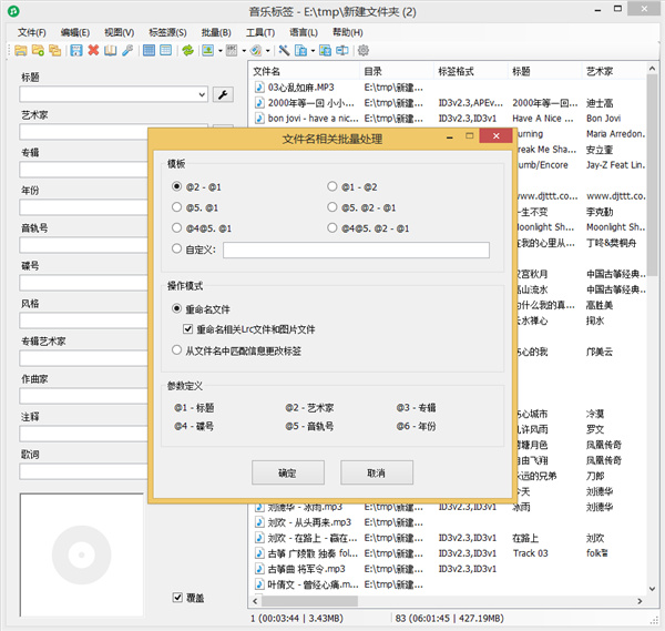 1、音乐标签PC版有着批量编辑标签功能: 作为标记代表原内容,例如可输入 A、B