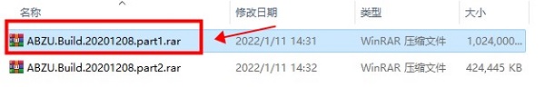 1.在线下载abzu中文版后,点一下第一个文件解压,如下图所示;