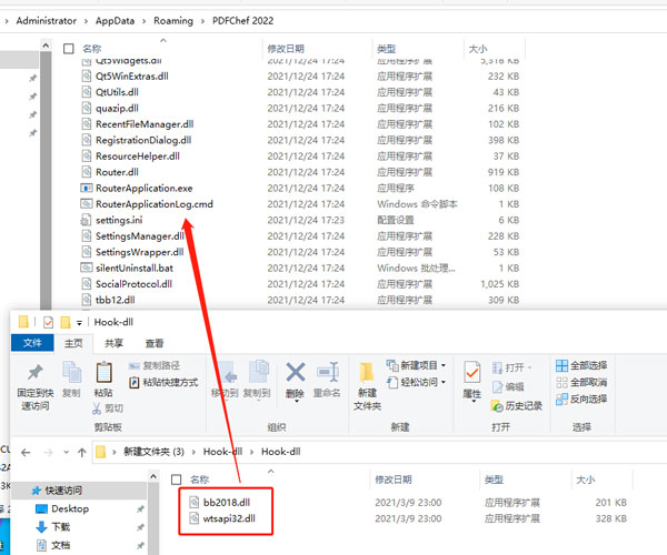 4、将下载文件中的“Hook-dll.rar”解压出来,将Hook-dll中的两个dll文件放到软件安装位置中;