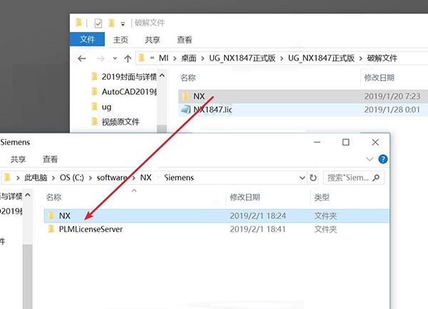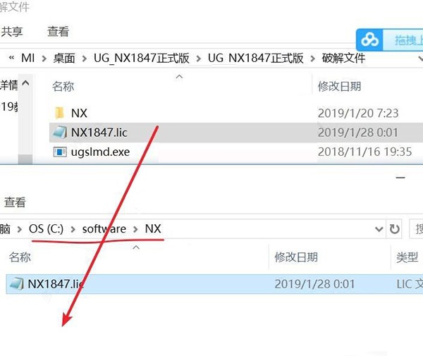 5.破译文件夹名称中的破译NX将1874许可证书文档拷贝到提前准备安裝的文件目录中,如我的C:softwareNX