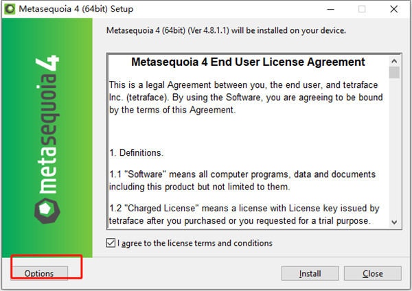 3.假如您想挑选安裝部位,可以点击options,挑选安裝部位;