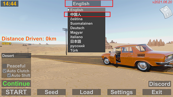 3、初次进入游戏,默认显示为英文,我们可通过最上方的语言设置栏进行切换