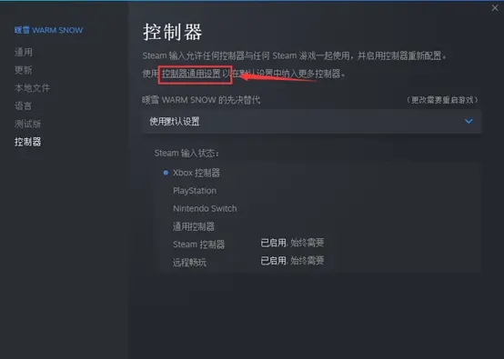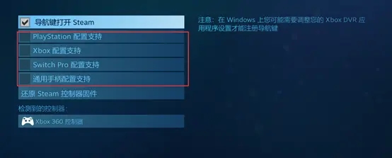 支持,如果您遇到了手柄适配相关问题,请尝试禁用steam控制器进行解决。(在库中查找游戏->右键点击->“控制器”->”控制器通用设置”->禁用steam控制器)