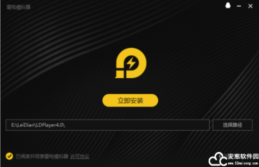 2、双击雷电模拟器exe安装程序,然后进入软件安装向导界面,可选择自定义安装路径。