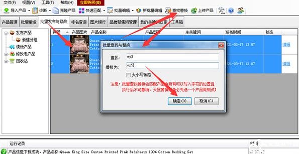 首先全选要修改的智能详情的产品,再点击上面的查找替换,