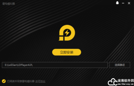 2、双击雷电模拟器exe安装程序,然后进入软件安装向导界面,可选择自定义安装路径。