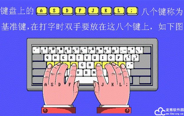 如下图,手指放在八个基本键上,两个拇指轻放在空格键上。