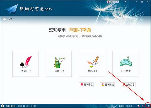 1、打开打字通主界面,点击右下角“设置”按钮。