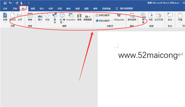2、插入中可以在文本中插入照片图像以及其他的文件,还能够设置书签。