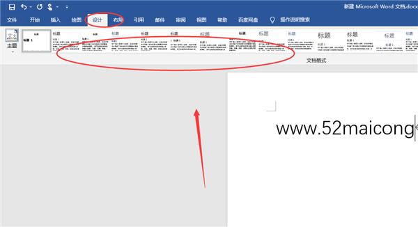 4、设计选项中可以设置文档的主题,或者是格式都可以编辑。