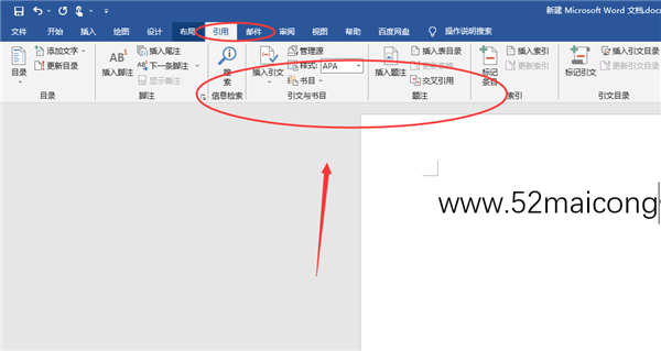 6、还有引用选项可以使用,或者是添加脚注以及标记条目都可以。