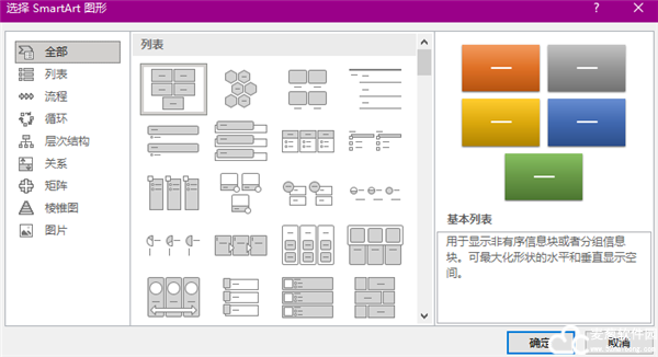 您不必是设计专家也能创建专业的图形。使用大量附加 SmartArt布局可以创建多种类型的图形,如组织结构图、列表和图片图表。