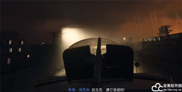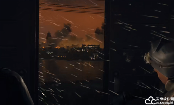 6、随着火车门缓缓的打开,可以看到外面的情况,战火弥漫。