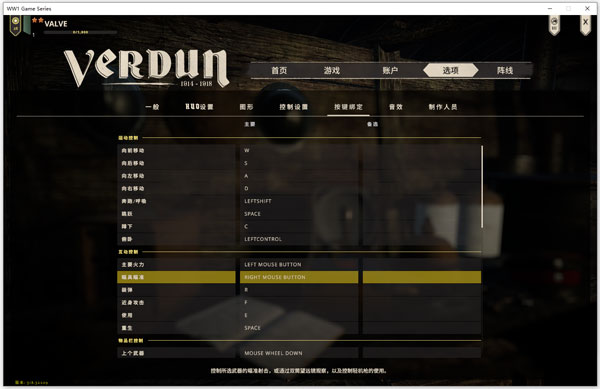 5、点击选项,进入可以看到一般设置、游戏数据设置、图形设置、控制设置、键位绑定设置、音效设置等等通用设置