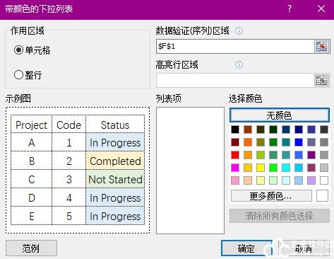 此功能可以帮助您根据轻松选择的对应项为下拉列表值或行上色(添加条件格式)。