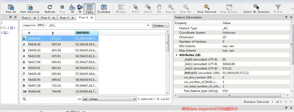 Data Inspector是一个查看应用程序,允许您在翻译之前,之后和期间检查数据。 大多数用户在Data Inspector中查看结果之前在Workbench中创建工作流程。 不同的选项允许您在2D模式,3D模式和表格视图中检查数据。