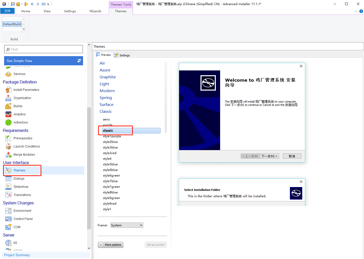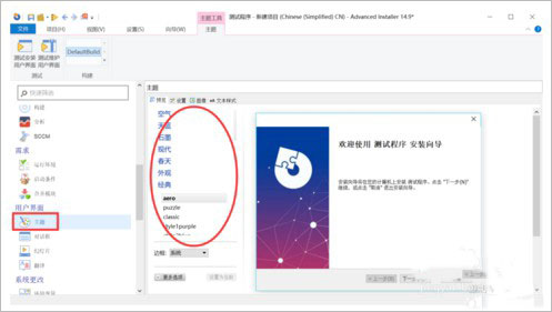 5、修改安装界面。在用户界面的主题,选择喜欢的主题
