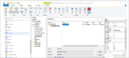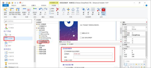 8、如果需要设置安装及运行程序,可以修改ExitDialog的相关属性(启动的应用程序在之前添加的文件列表中选择)