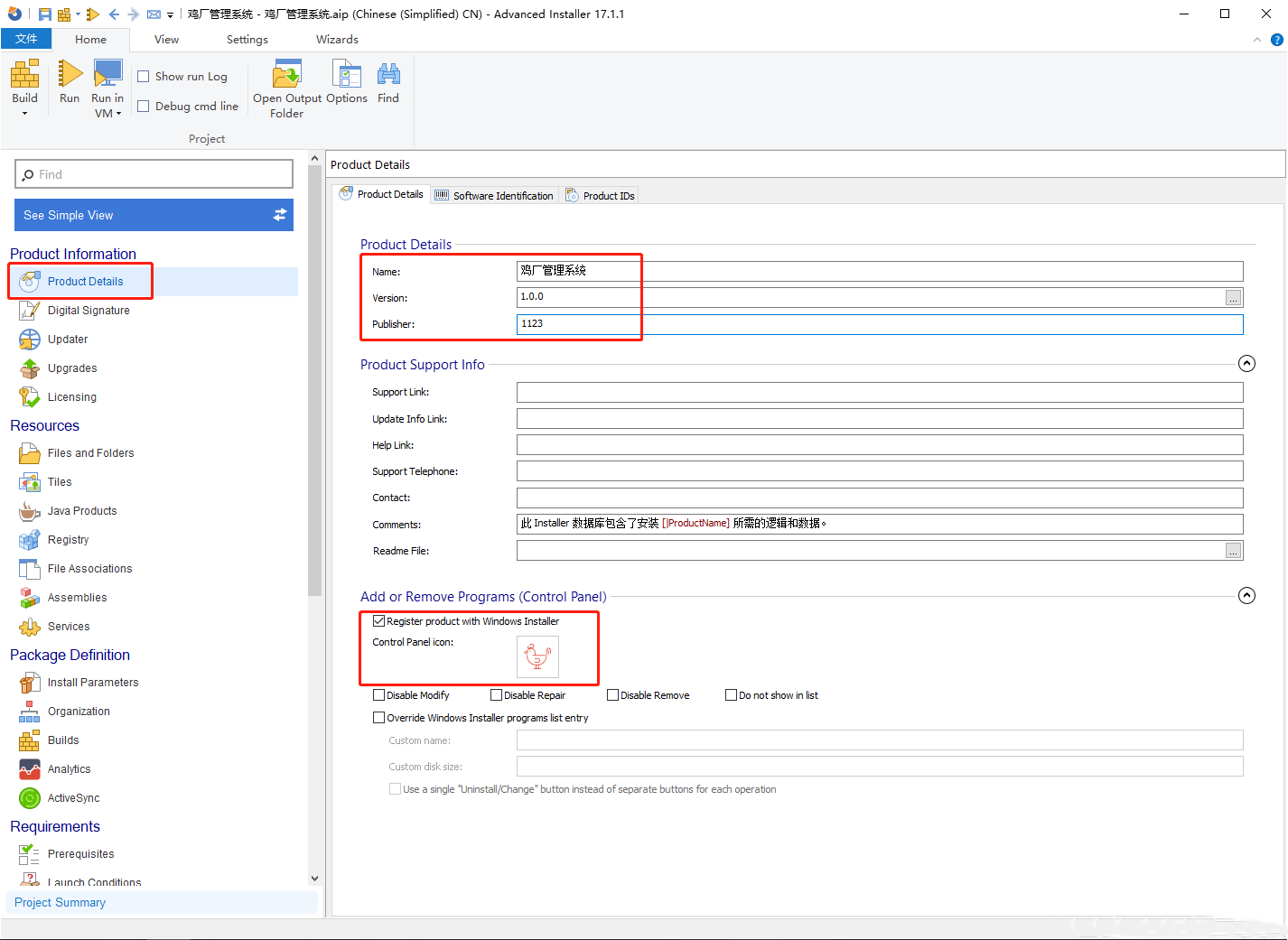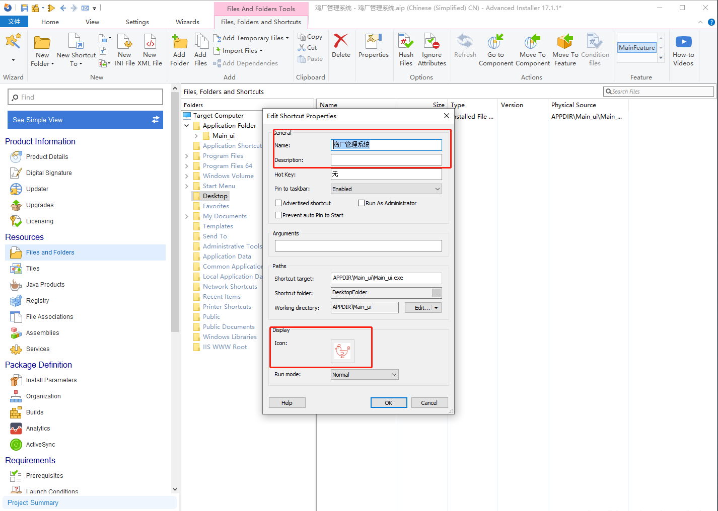 详情栏里输入项目名称,版本信息,出版者名称。然后如果需要设置icon,选择自己喜欢的icon路径。