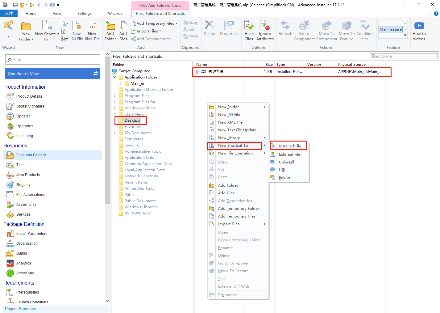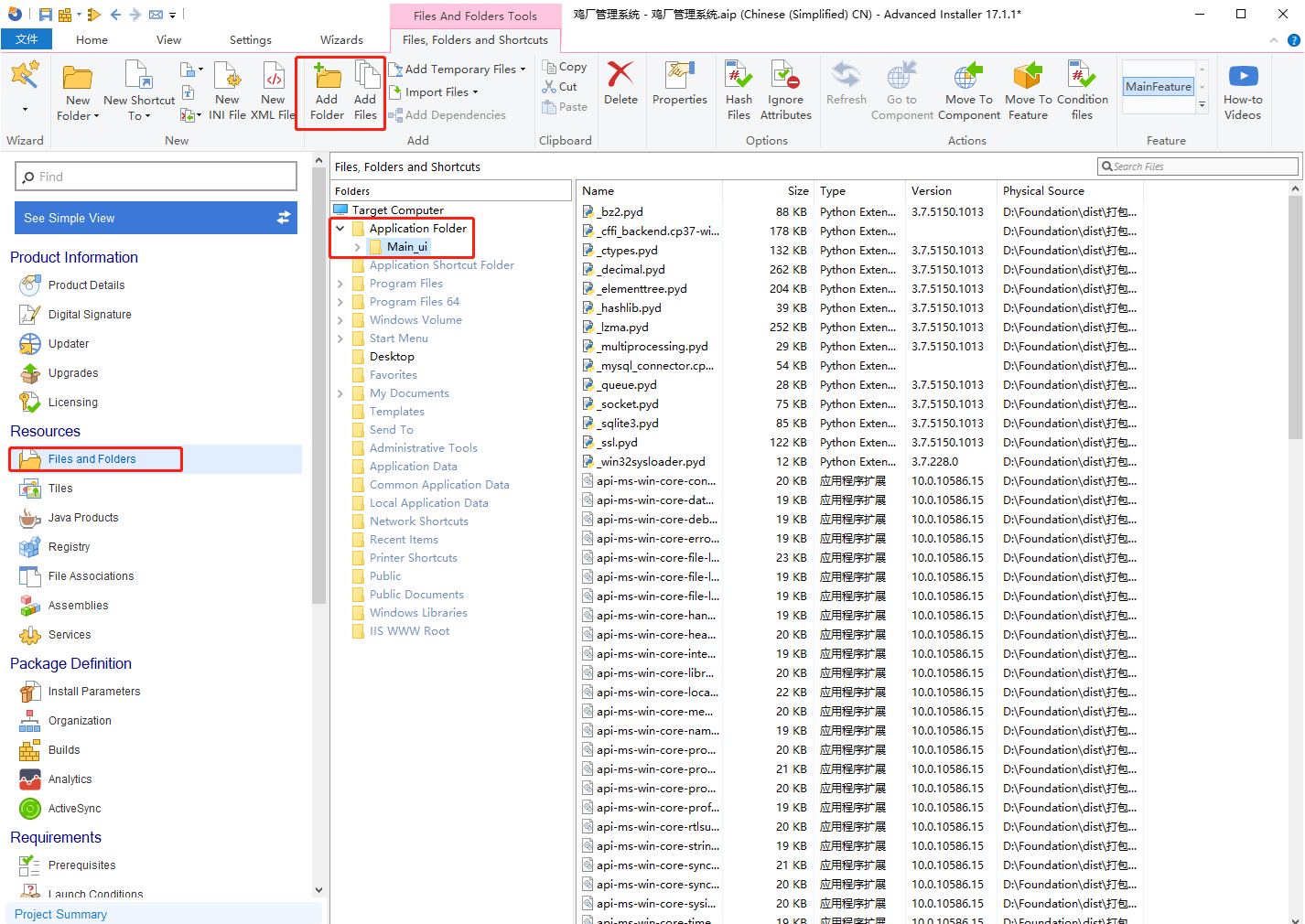 1.选中ApplicationFolder,点击工具栏里的添加文件,将源文件添加进去。