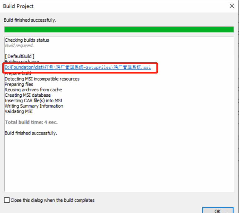 如果没有保存项目会提示先保存好项目,再进行生成安装程序。