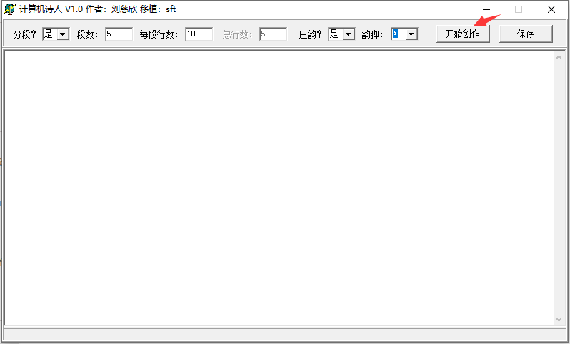 计算机诗人电脑版操作是十分的简单,没有很多复杂的操作,用户只需要编辑好参数,即可一键实现诗词的创作,然后就可以得到非常有诗意的句子了。