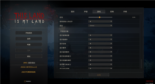 6、在游戏中,玩家可以选择是否开启显示装弹进度、指南针、目标、零件、状态和能力、武器和丹药、耐力和体力等等游戏设置