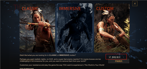 8、点击开始抵抗,然后选择你想要的事件和是否需要教程,即可开始游戏