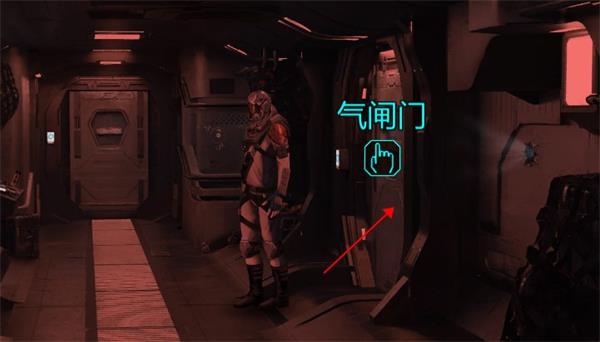 2、点击舱门进行交互,将循环气闸开关拉至左边,既可以到飞船外,找到工具面板并获取物品;