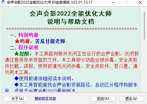 优雅和谐,解除限制,卸载插件,支持英文,图标汉化,会声会影清理工具最新版支持中文等六个按钮请勿使用,避免发生错误。