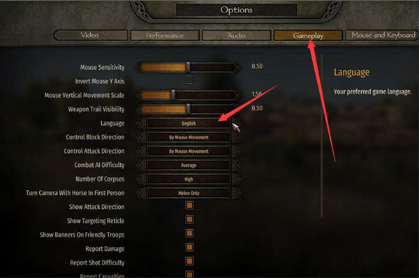 7、依次选择Gameplay,Language,简体中文,然后保存就中文了;