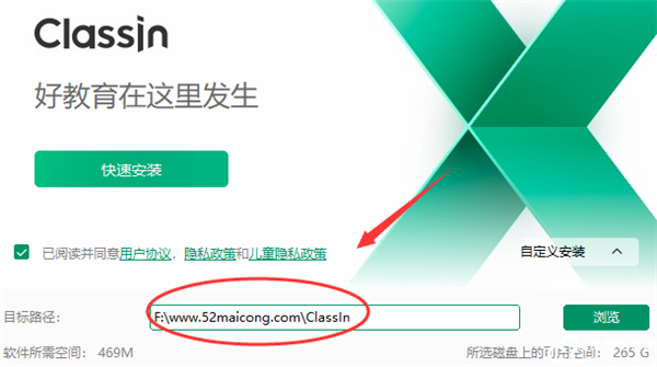 6、设置classin电脑版的安装位置,默认是系统盘,用户可以修改至其他的磁盘中。