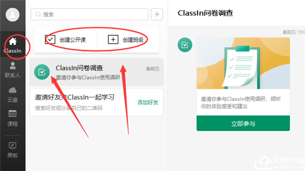 1、打开刚刚安装的classin电脑版,点击主页后即可创建公开课以及创建班级。